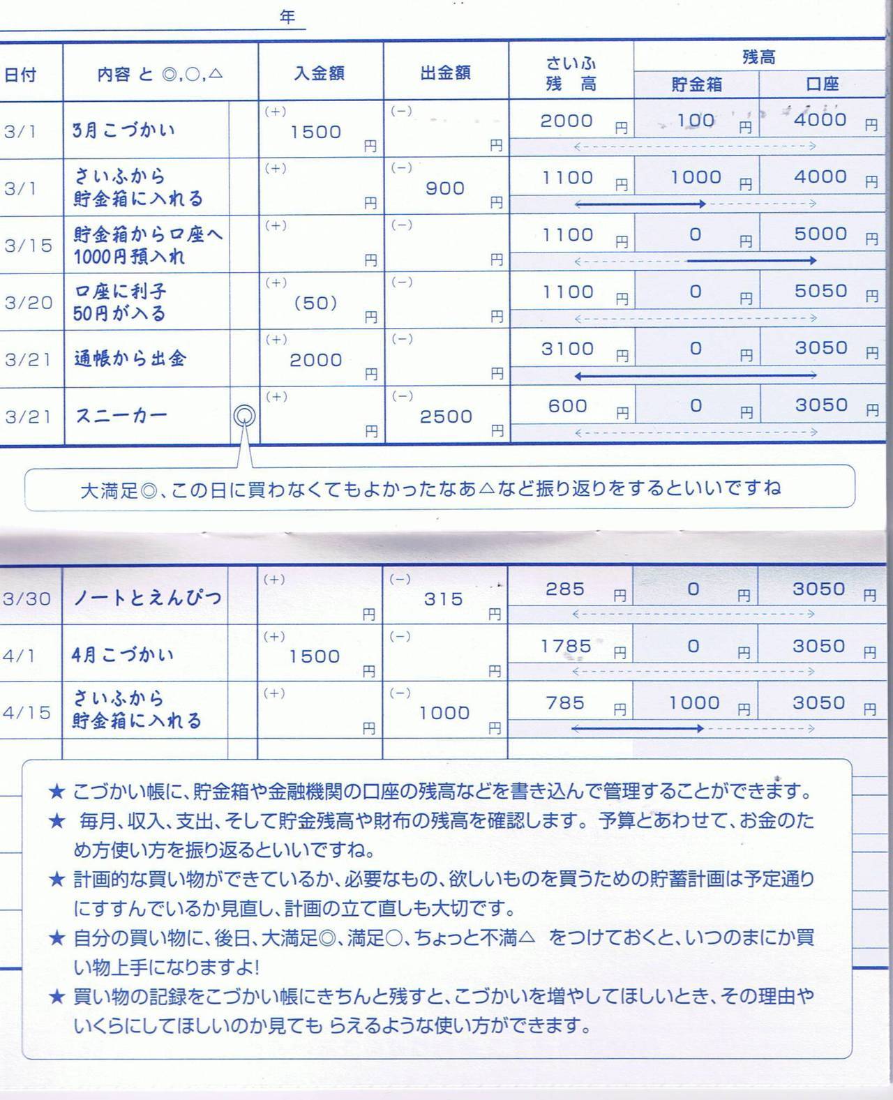 こづかい帳でやりくり上手を目指します